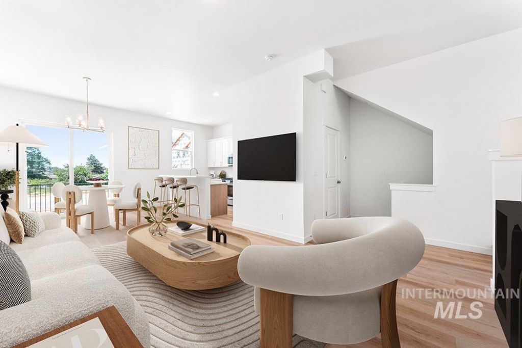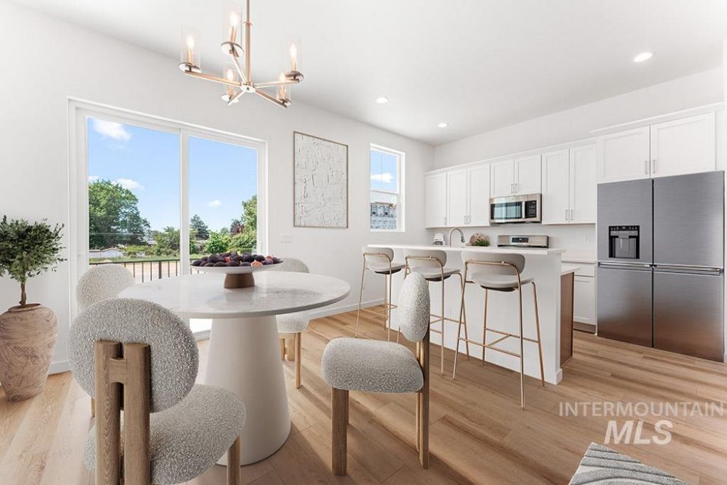 Discover the perfect blend of style, function, and convenience in this modern 3-story townhome, designed for an on-the-go lifestyle. With direct access to The Village at Meridian and downtown Boise, youre never far from premier shopping, dining, and entertainment options in both Meridian and Boise. Featuring sleek, durable LVP flooring and an open-concept layout, this home offers low-maintenance living without sacrificing comfort. The ground-level bedroom is ideal for remote work, a private guest suite, or a cozy office space. The second floor opens up to a spacious, light-filled great room, an open-air balcony perfect for morning coffee or evening unwinding, and a contemporary kitchen outfitted with quartz countertops, SS appliances, and elegant neutral finishes. Retreat to the owners suite, a true sanctuary boasting a generous walk-in closet and a master bath with dual vanities and a walk-in shower. Enjoy the benefits of zero maintenance living with access to a private community park! Photos Similar.