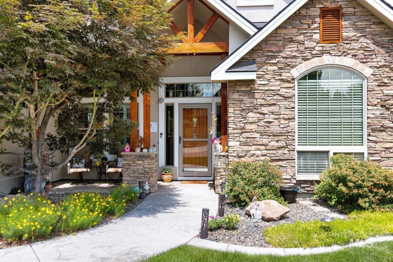 Stunning One-Owner Custom Home by Thompson Homes in the Highly desired Settlers Bridge! One of Meridians Premier Communities! This will not last long due to the extensive custom features, like, Tall ceilings and Hardwood Maple floor throughout main living area, custom Alder cabinets throughout the home, GE Monogram Appliances, Built-in Double Ovens, Walk-in Butler Pantry, large laundry room & mud room, Huge primary bedroom & bath with double vanities, oversized jacuzzi tub, Walk in Shower and Massive walk in closet. All closets are custom built by Treasure Valley Closets and are adjustable. Custom Wood Plantation Shutters in main living area and primary bedroom, lifetime warranty on all Milgard windows and Kohler Faucets. 22 x 15 Covered Patio with Built-in outdoor GE Monogram series BBQ w/rotisserie. Backyard is Beautiful and full of extensive mature landscaping, backing up to a lush HOA maintained green space. The north-facing backyard provides privacy, serenity, and the feel of acreage without the maintenance, all just steps away from the neighborhood pool, play area and clubhouse. HAO includes Pressurized Irrigation. Plumbed for central Vac and wired for 6 zones for computer, sound and video! 90% furnace with AC 13 Seer with two additional mini splits for added home comfort, One in the primary bedroom and one upstairs. Too many features to list. A must see Home!