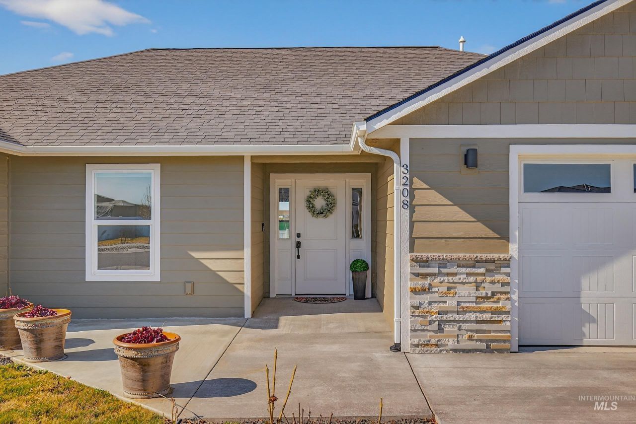 Welcome to easy living in the Canyon Crest subdivision. This single level home built in 2022, offers 1,808 square feet with 3 bedrooms, 2 bathrooms, and a 2 car attached garage. The kitchen features quartz countertops, modern appliances, and flows easily into the dining and living areas. The primary suite includes a walk in closet and a private bathroom with dual vanities, quartz counters, and a walk in tile shower. Step outside to enjoy sunset views from the patio overlooking the fully landscaped yard with sprinkler system and vinyl fencing. Located in a neighborhood with sidewalks and a community park, this home offers a great combination of modern finishes, functional design, and a convenient location.