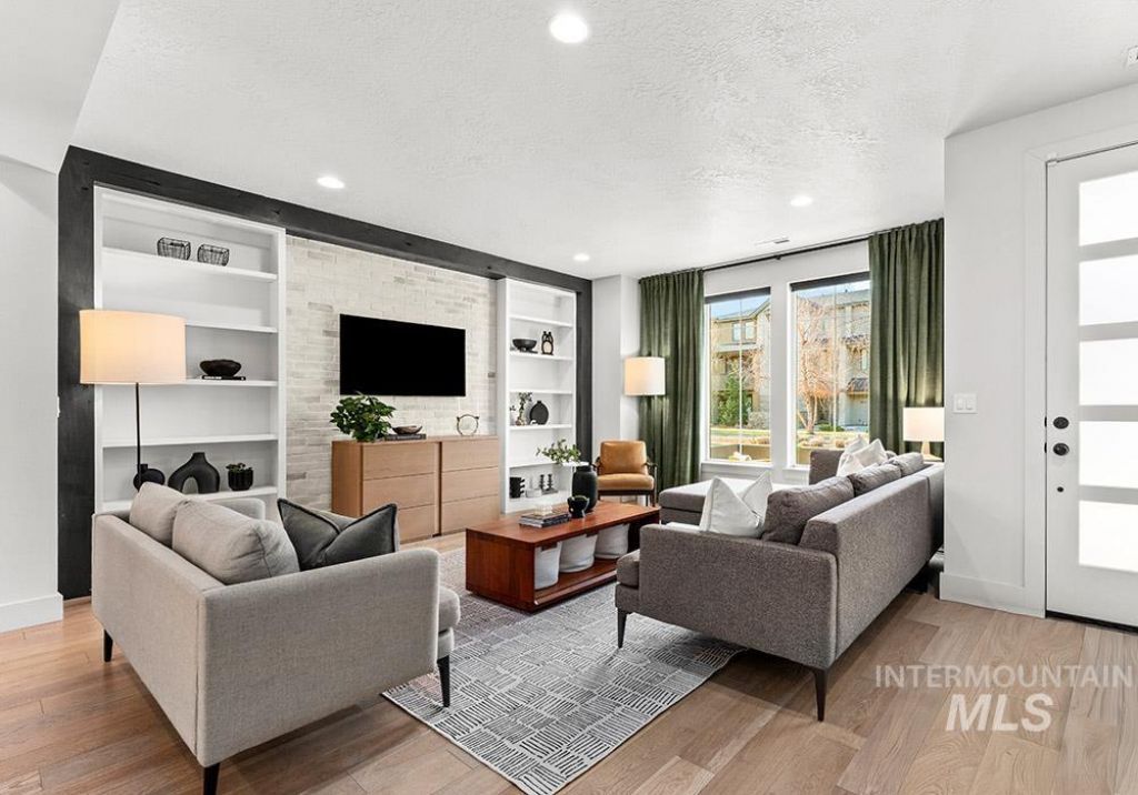 Luxury lock-and-leave living in highly sought-after Harris Ranch, Boises premier lifestyle community. Enjoy effortless access to the Boise River Greenbelts miles of paved walking/biking paths, plus immediate proximity to the Boise Foothills and Ridge to Rivers trails. Just minutes from Harris Ranch community pool, shops, restaurants, coffee spots, parks, and playgrounds, plus quick drives to Bown Crossing, Downtown Boise, and Micron. Inside, warm wide-plank wood flooring and a spacious open great room create an inviting atmosphere for everyday living and entertaining. The bright neutral kitchen showcases an oversized island, built-in stainless steel appliances, gas rangetop, subway tile backsplash, and a mirrored coffee/dry bar, with a generous dining area nearby. A dedicated main level home office includes a built-in desk and storage, ideal for remote work. Upstairs, the spacious primary suite offers beautiful foothill views and an en suite bathroom with dual vanities and a frameless glass walk-in shower. Enjoy outdoor living in the two front and back patios, perfect for relaxing, gardening, or entertaining. A detached two-car epoxied garage with alley access provides convenient parking and additional storage. Experience the ultimate Boise lifestyle with the best of the city just minutes from your doorstep.