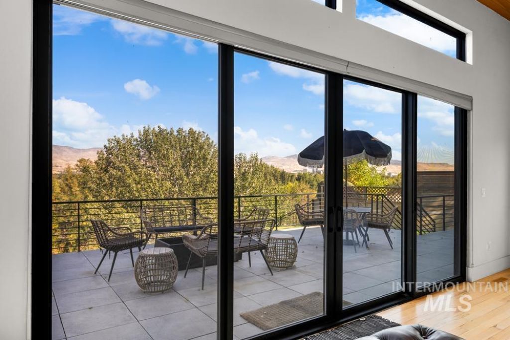 Perched above the city on the Central Rim, this modern marvel captures the mid-century aesthetic while showcasing breathtaking views of rolling foothills, open skies & a cityscape that glows at dusk. Feel a sense of space & serenity, elevated above the treetops. Enjoy fabulous access to parks, Greenbelt, & Boise River just below. Set on a rarely traveled street, the wood-clad exterior & expansive glass reflect a design ethos rooted in simplicity, geometry, & a connection to nature. Inside, soaring wood-lined ceilings angle toward sliding doors, framing the landscape and inviting light to pour in. Warm wood floors, a statement fireplace, linear lighting, & clean architectural lines create a space that feels curated & comfortable. The kitchen continues the aesthetic with sleek cabinetry & dark quartz counters. The main-level primary suite offers privacy, a stylish bath & access to the terrace where a hot tub awaits. A walk-out lower level includes additional bedrooms, laundry, & spacious bonus room. Outdoors, the elevated deck feels suspended above neighboring rooftops, offering desirable privacy, complemented by a barrel sauna, lush lawns & two-car garage. Unparalleled proximity to downtown, the river, & green space, including the nearby Greenbelt & Albertsons Park, this is modern, architecturally significant living at its finest in one of Boises most iconic settings.