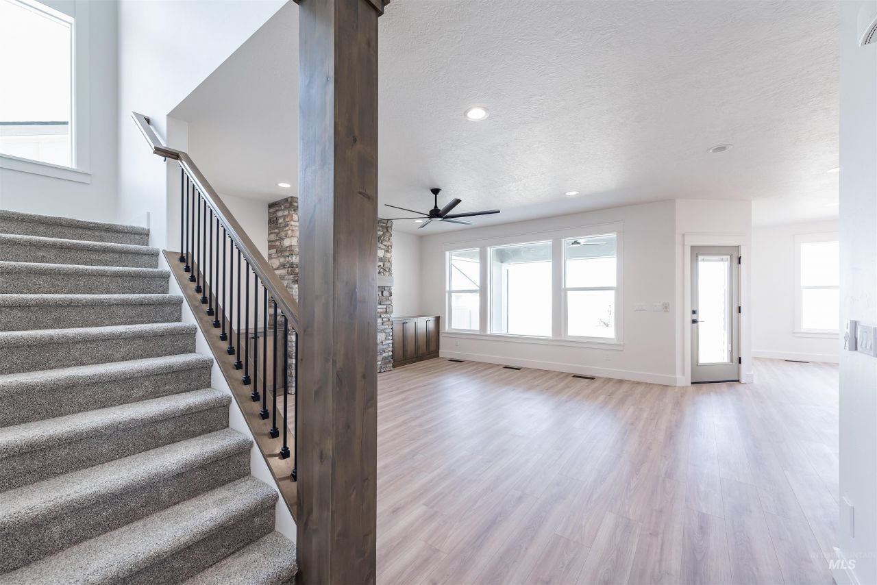 The Tuscany offers an unbelievable amount of home for your money. With 5 Bedrooms, including downstairs guest suite, 3.5 bathrooms, large bonus room, and office it is one of the best values in the new home market. The Tuscany is perfect for larger or multi-generational families or people who love to have visitors. The downstairs den has a secret closet built into the trimwork and can be used as an office, or even converted to a 6th bedroom! The luxurious master suite has a deep soaker tub, tiled shower, and massive closet that connects to the laundry room. The Tuscany is from our Ridgeline collection so expect more luxury over our Trailhead collection! Built using Firewise-inspired construction practices, The Tuscany includes materials and design elements selected for resilience, longevity, and added peace of mind. Located in the scenic rolling hills south of Boise, Mayfield Springs offers peaceful surroundings paired with quick freeway access to Boise, Meridian, and Mountain Home?making it an ideal blend of nature and convenience. Community fields and walking paths available now, playground and sport courts by end of 2026, pool and community center by May 2027. BTVAI. Home is complete, ALL PHOTOS ARE ACTUAL. Bring your real estate agent for access to tour the home via lock box, or tour on your own with just smartphone and ID!