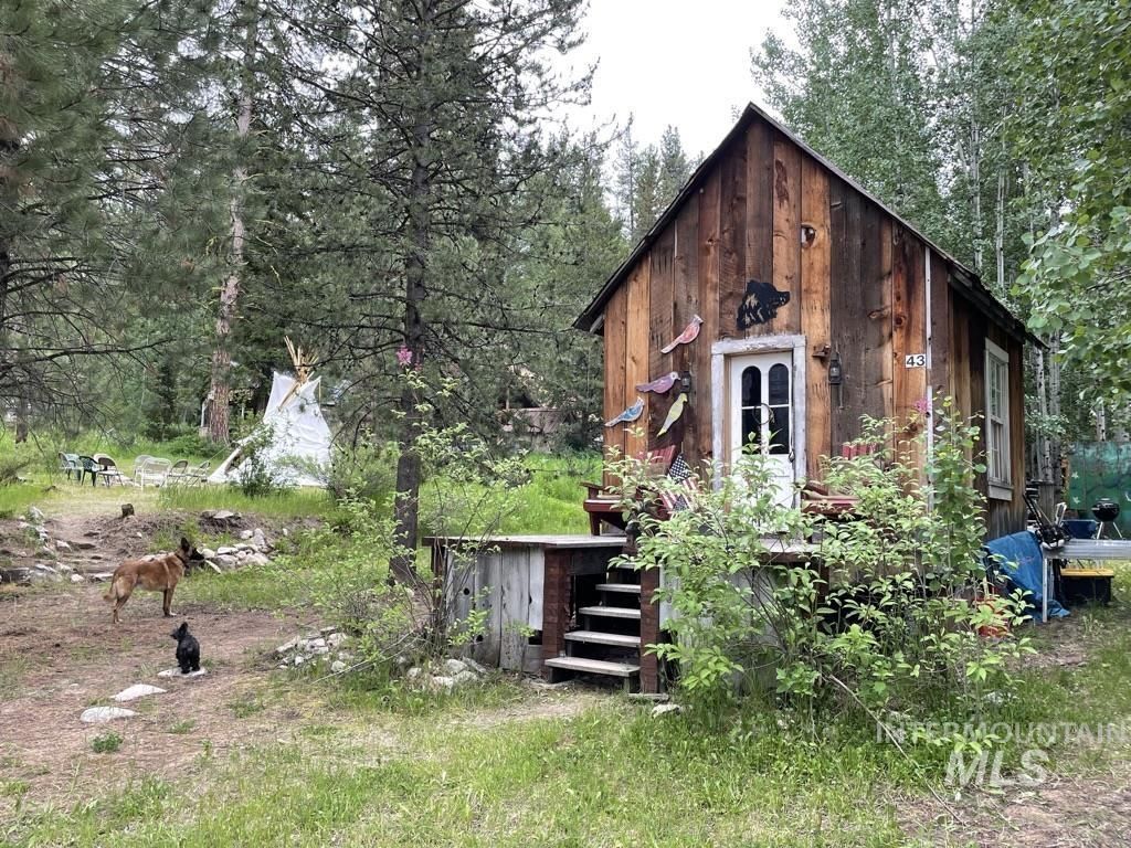 A rare opportunity to own a lot of this caliber in historic Atlanta. This exceptional corner property enjoys breathtaking Mountain views and sets on the edge of the Sawtooth Wilderness Area, a premiere location for back country adventures. On the west side of the lot find a charming historic one room cabin tucked into a grove of Aspens. The back deck has been extended, posts added, it is poised to be converted into an enclosed outdoor kitchen. The east side of oversized lot provides opportunity for growth. Community water is hooked up and power is available. Fire pit, antique wood stove, tipi, furnishings, shower tent and solar generator included. Year around access. See the stars at night & enjoy Atlantas history, arts, hiking, biking, fishing, pristine hot springs & rivers.