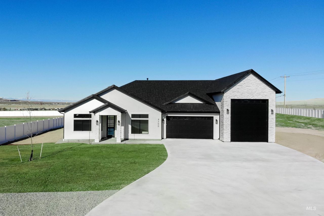 Welcome to this stunning, single level custom home, situated on 1 Acre Lot, within 35 min drive to Boise. Entrance hallway, Living room and Master Bedroom feature beautiful ceiling Faux Beams. Big living room offers cozy fireplace, large slide doors that lead to extended covered patio. Dining area flows into incredible kitchen-complete with Kitchen Aid appliances, Pot Filler, Quartz countertops, island with breakfast bar, soft close cabinets and walk-in pantry. This beautiful home offers 3 bedrooms, 3 bathrooms and office/den. Huge Master suit features walk-in closet, master bath with dual vanities, a free-stand tub and modern walk-in shower. A lovely laundry room with sink, cabinets and eye-catching tile designs leads into massive 4 car RV garage, deep enough for all your toys. Additional RV parking and plenty of space for detached Shop or gardening area. This is a must see. !Back on Market due to expiration of Buyers property sale contingency!