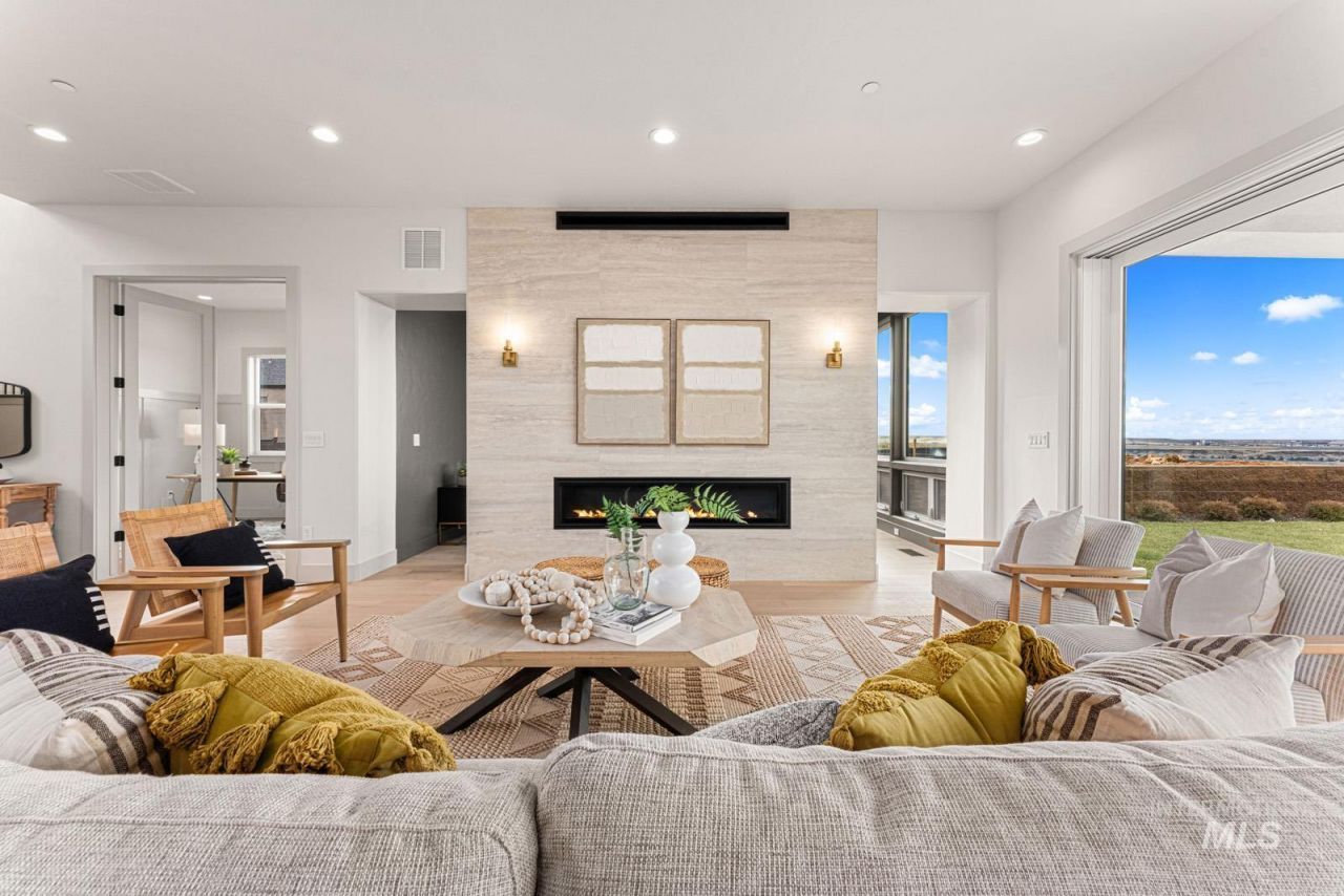 Step inside this Boise Foothills home and take in panoramic views stretching across the entire Treasure Valley. The functional layout enjoys an expansive kitchen, dining room, great room, and club room designed to make the most of open-concept living. In the great room, a sleek 72 linear fireplace acts as a centerpiece, while a wall of sliding glass connects you to the outdoors. The kitchen is an entertainers dream, featuring spacious countertops, handsome cabinetry, and Wolf appliances. Head upstairs to the 40-foot balcony off the flex room. The primary suite revels in these views, complemented by a luxurious bath with a freestanding tub, dual walk-in closets, and a fully tiled shower. Several bedrooms, bathrooms, and zoom stations round out the home. Nestled in the Boise Foothills, the Harris Ridge community offers breathtaking views of the Barber Valley & Boise proper. This neighborhood enjoys luxurious amenities, miles of nearby recreation, & prime access to downtown Boise. Home is ready now.