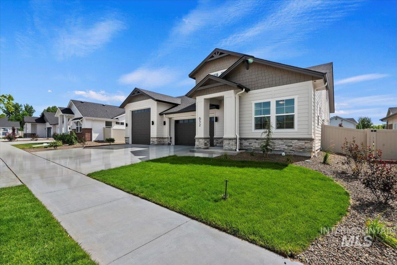 This amazing RV bay home by Sterling Homes features 4 bedrooms, 3 baths and 2,458 sqft with a generous double loft upstairs, this home is built with space to spare. Are you looking for a quality well-built home that includes all the high-end upgrades & finishes you expect and they are included in the price? Then you need to visit us and find out what separates us from the others. This open-air floor plan allows for easy entertaining with views of the foothills from Great Room and Primary suite. This home wows at every corner and turn. The kitchen features slow close wood cabinetry, beautiful quartz countertops, and a large center island with built-in stainless-steel appliances. The main level primary suite features a frameless glass shower, soaker tub and a beautiful quartz dual sink vanity. Front and back yard landscaping, sprinklers, and fencing included. Need extra space for all your toys, this RV Garage is textured, painted & insulated, bring your imagination for all the extra space this RV Bay provides! Come out and see this beautiful luxury home community adjacent to Eagle Hills Golf Course. You can visit our Sales Office located at 652 N Morning Glory Avenue in Eagle. Open from 10am - 6pm. Hill Rd. to Echohawk, left on Snocreek, right on Morning Glory to visit our model home.